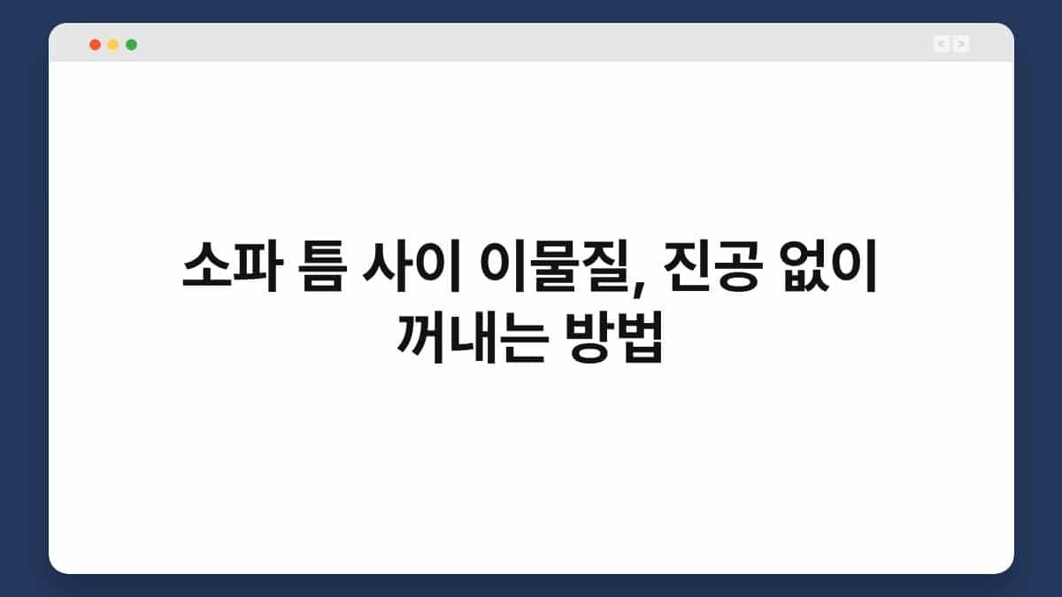 소파 틈 사이 이물질은 우리가 일상에서 자주 겪는 문제 중 하나입니다. 소파의 편안함에 비해 틈 사이에 쌓이는 먼지나 이물질은 보이지 않게 쌓이기 마련입니다. 이물질이 쌓이면 소파의 청결뿐만 아니라 건강에도 악영향을 미칠 수 있습니다. 특히 애완동물을 기르거나 아이가 있는 가정에서는 더욱 신경 써야 할 부분이죠. 하지만 걱정하지 마세요. 진공 청소기를 사용하지 않고도 이물질을 효과적으로 제거할 수 있는 방법이 있습니다. 이 글을 통해 소파 틈 사이 이물질을 간단하게 제거하는 방법과 유용한 팁을 알아보실 수 있습니다.
