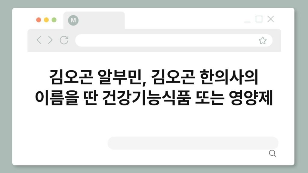 김오곤 알부민은 건강기능식품으로, 김오곤 한의사의 이름을 딴 제품입니다. 이 제품은 특히 간 건강과 면역력 증진에 도움을 주는 성분으로 주목받고 있습니다. ...