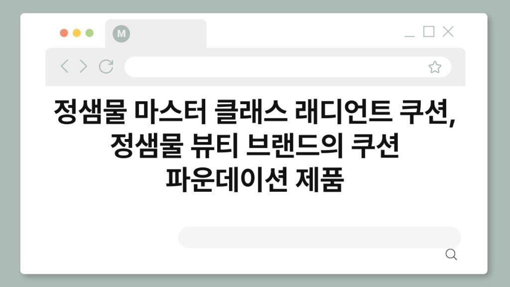 정샘물 마스터 클래스 래디언트 쿠션은 많은 뷰티 애호가들 사이에서 큰 사랑을 받고 있는 제품입니다. 정샘물 뷰티 브랜드는 고유의 기술력과 품질로 ...