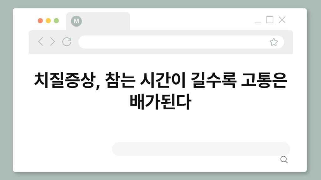치질은 많은 사람들이 겪는 고통스러운 질환입니다. 특히 치질증상은 초기에는 미미하지만, 시간이 지날수록 심각해질 수 있습니다. 제가 처음 치질을 경험했을 때, ...