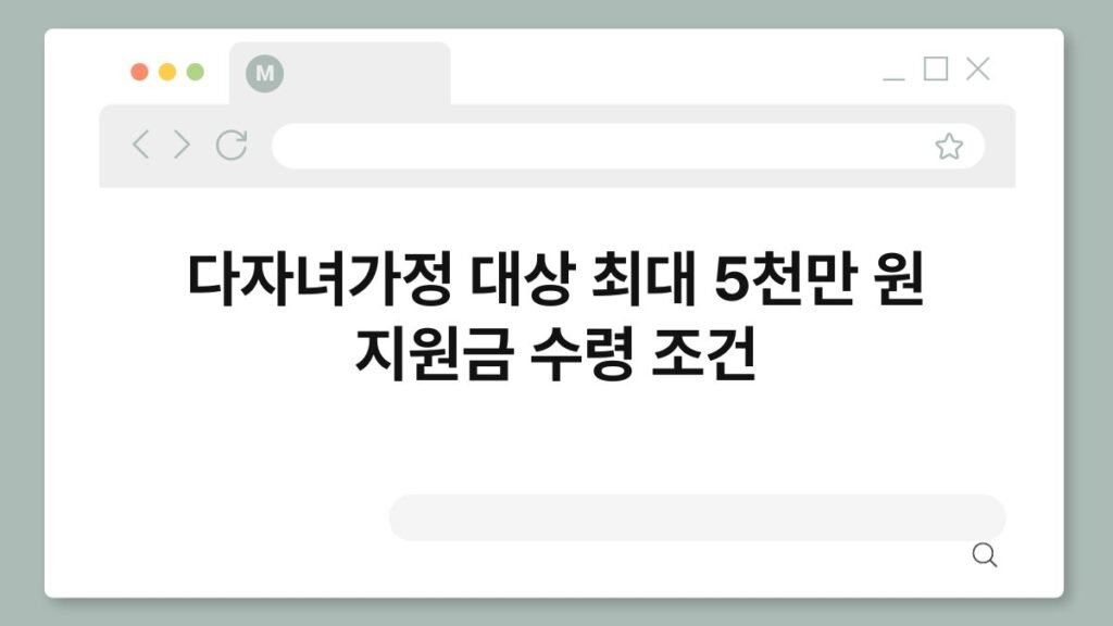 다자녀가정 대상 최대 5천만 원 지원금 수령 조건은 많은 가정에 큰 도움이 될 수 있는 제도입니다. 특히 자녀 양육에 대한 ...