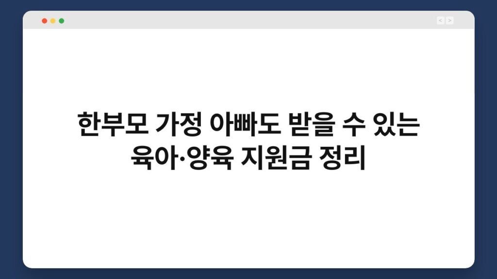 한부모 가정 아빠도 받을 수 있는 육아·양육 지원금은 한부모 가정의 아빠들이 자녀 양육에 필요한 경제적 지원을 받을 수 있도록 마련된 ...