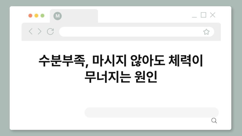 수분부족은 우리 몸에 필수적인 수분이 부족해지는 상태를 의미합니다. 이 상태가 지속되면 체내 여러 기능이 저하되고, 심지어 체력까지 무너질 수 있습니다. ...